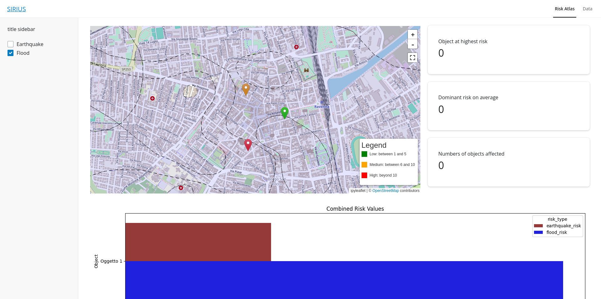 Al momento stiamo sviluppando un'applicazione Web per la visualizzazione interattiva dei dati e il monitoraggio di eventi di rischio.