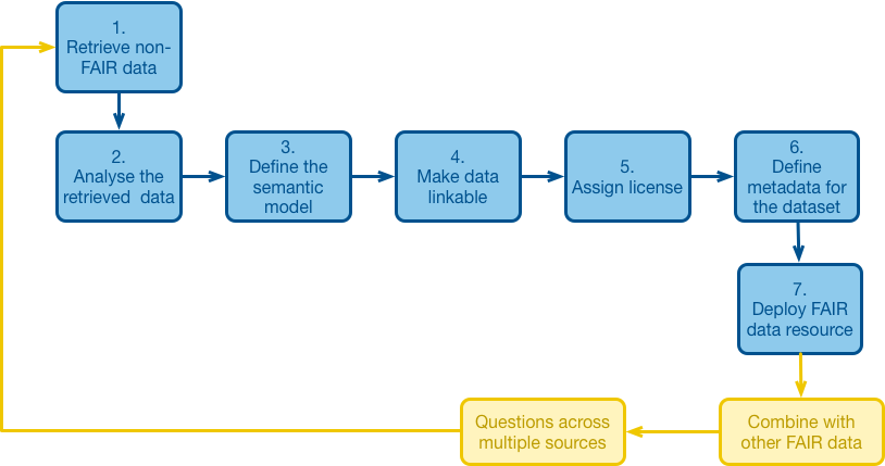Processo di trasformazione di dati non-FAIR in una loro versione FAIR.