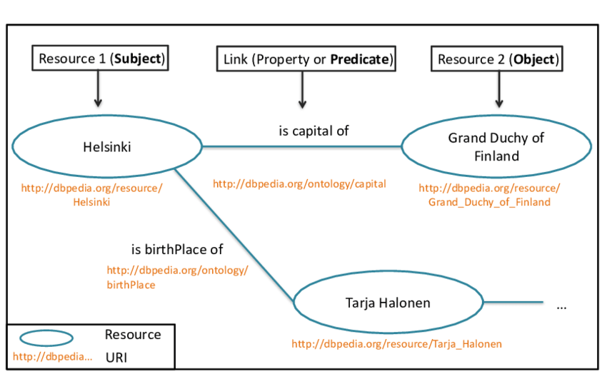 Sono rappresentati tramite triple soggetto-predicato-oggetto su cui si basa RDF (Resource Description Framework).