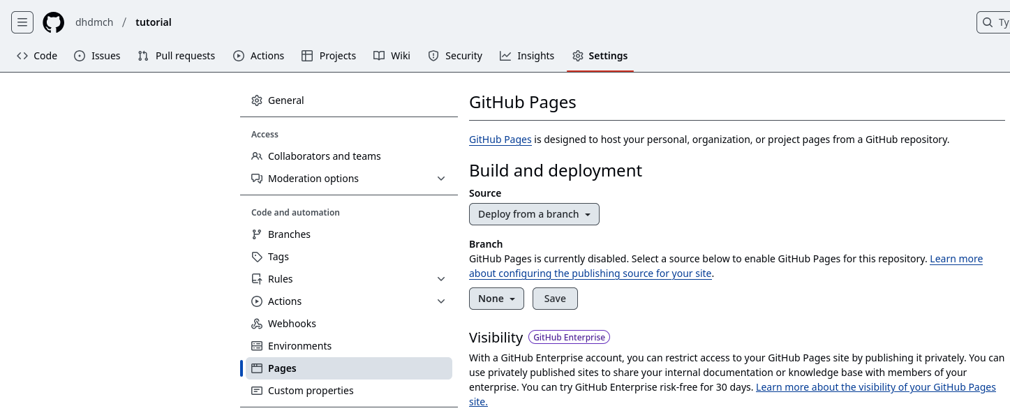 A questo punto, ci limitiamo ad esporre delle semplici pagine Web statiche con lo stile predefinito di GitHub.