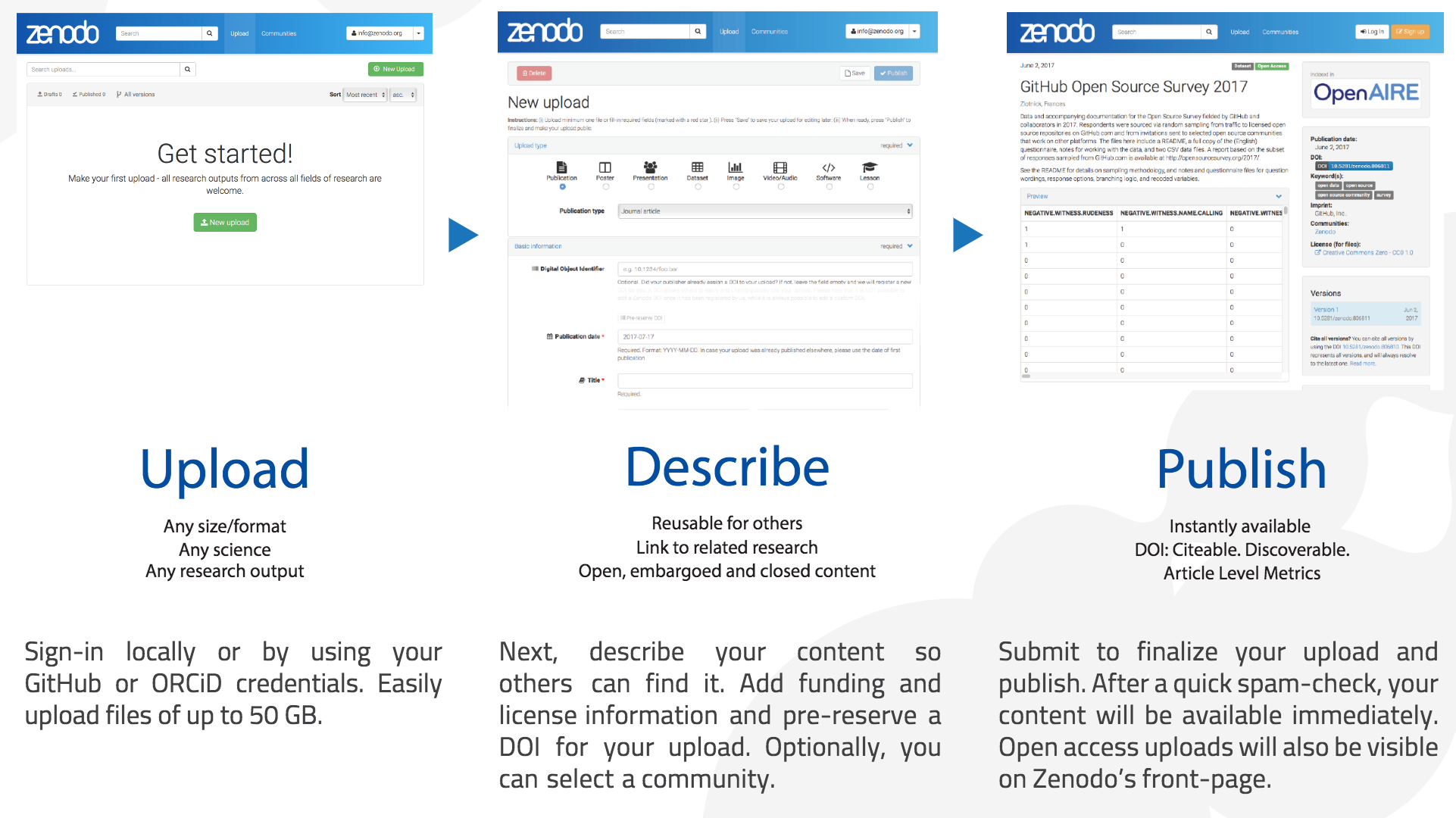 Consente ai ricercatori di tutte le discipline di condividere e preservare gratuitamente i loro risultati di ricerca, in generale indipendentemente dalle dimensioni o dal formato dei propri dati.